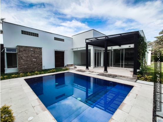 Consta de 4 alcobas, 7 baños en total con desague especial en las duchas, zona de oficios, estudio, amplia sala principal junto a sala comedor con conexión a terraza con pergola, cocina integral abierta, piscina, ducha y baño externo, zona de servicio con baño y parqueadero para aprox. 10 carros. 3mil litros de reserva de agua
