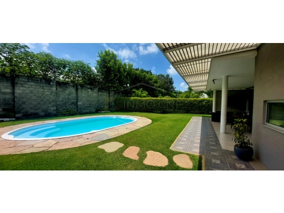 Casa consta de 3 alcobas con vestier, hall de alcobas, 5 baños en total, ampla sala principal junto a sala comedor con conexión a zona verde, PISICINA PROPIA, cocina integral estilo americano, zona lavanderia y cuarto de servicio.